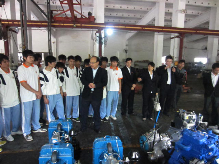 首先蔡總帶領(lǐng)這批興致勃勃、充滿朝氣的大學(xué)生參觀了我司的生產(chǎn)車間,細(xì)致認(rèn)真地向同學(xué)們介紹了車間設(shè)備的功能與使用情況,接著又帶領(lǐng)他們參觀了檢驗(yàn)檢測(cè)室、現(xiàn)代農(nóng)業(yè)設(shè)施、涂裝漆廠等。俗話說(shuō) “紙上得來(lái)終覺淺,絕知此事要躬行”在參觀的過(guò)程中,每到一處學(xué)生們都問這問那,不時(shí)做著記錄,表現(xiàn)出了濃厚的學(xué)習(xí)興趣。
